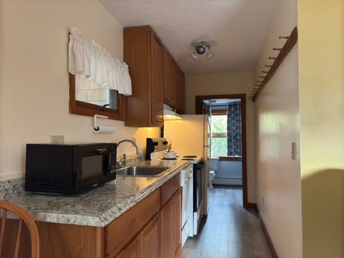 Kitchen is fully equipped, and includes a microwave and coffee maker.